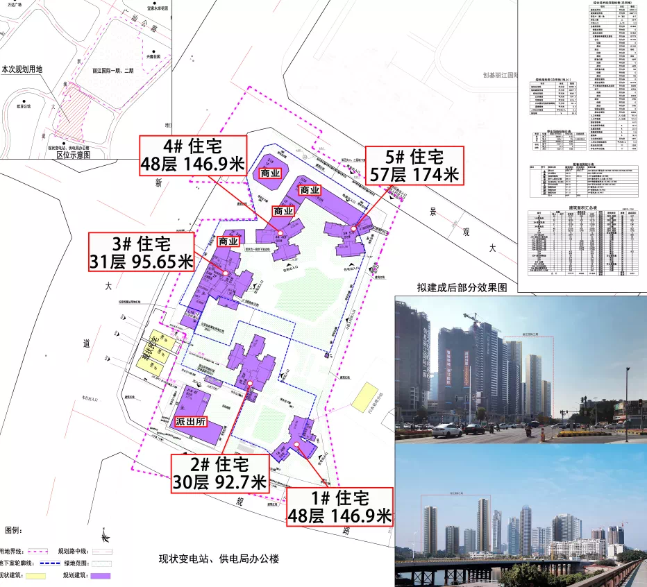 该项目现拟建5栋高层住宅塔楼,建筑高度为92-174米,其中48层146.9米2栋;57层174米、31层95.65、30层92.7米各一栋。