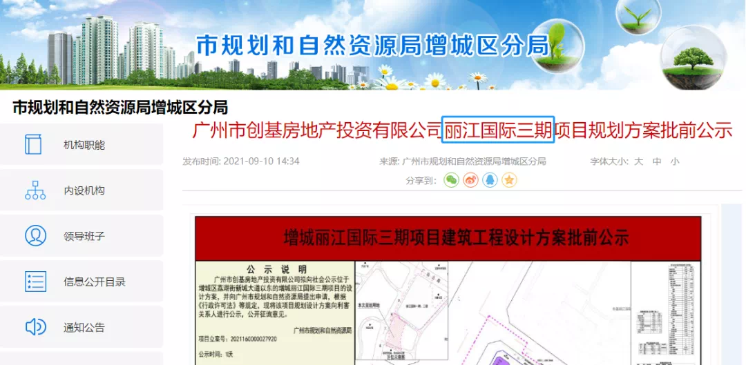近日,广州市规划和自然资源局增城区分局发布了丽江国际三期项目规划方案批前公示。
