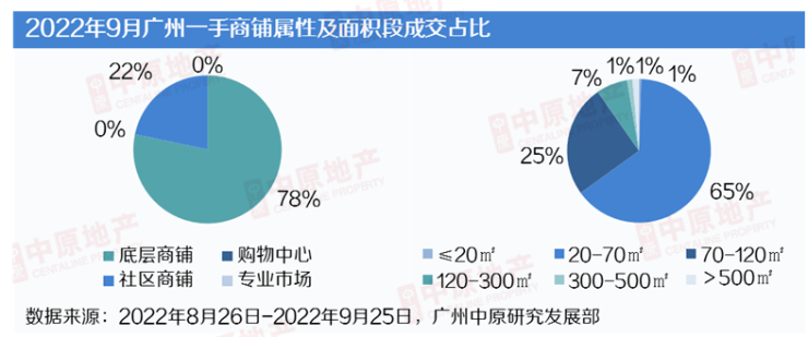 面积段方面,20-70㎡、70-120㎡商铺成交占比扩大至65%、25%,120-300㎡占比缩减至7%,其余面积段商铺成交占比微量。