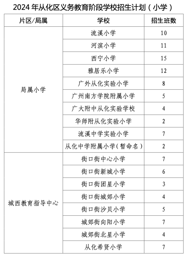 4月30日,从化区教育局发布《2024年广州市从化区义务教育学校招生入学工作细则》(以下简称《细则》)。今年,从化区全区计划开设小学一年级329个教学班,比去年减少23个班;初中一年级255个教学班,比去年增加23个教学班。