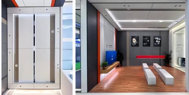 蜂窝大板是吊顶基本的组成材料,由“面板+蜂窝芯+底板”三大核心结构层组成。美智光电的蜂窝大板具有吸音隔热、抗压性强、耐候性强、通风透气等优势。为了令吊顶设计更多符合年轻人的审美,美智光电蜂窝大板采用布兰迪灰来进行包边定制,通过不同型材如包边、收边、龙骨灯带、错层的设计,着重体现现代装修的时尚感、简约感。同时,蜂窝大板大尺寸设计、蜂窝结构的特点,也为美智光电的智能吊顶矩阵带来了更多的可能性。