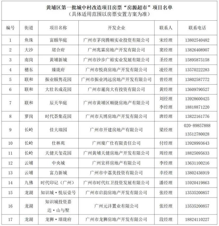 (黄埔区第一批城中村改造项目房票“房源超市”项目名单)