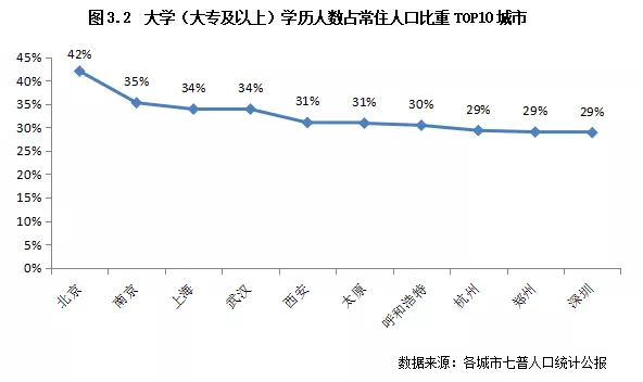 1.2京宁沪汉高学历人口占比先进,大学生人口占比均超三成