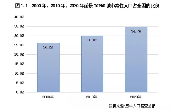 1、集中度:前景TOP50城市人口占比达35%,人口聚集度加速提升