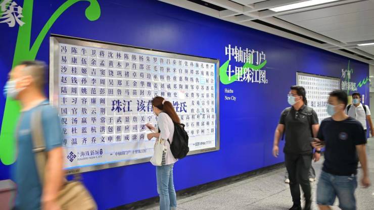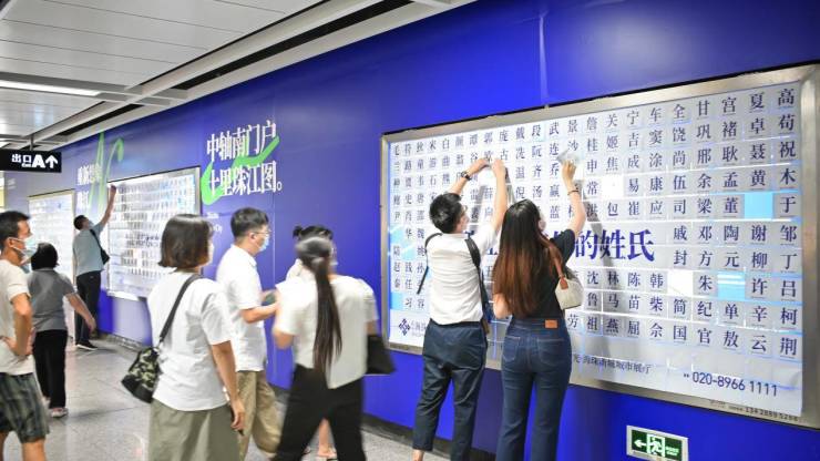 在广州地铁3号线沥滘站站台的线下活动现场,一面面“珠江该有你的姓氏”的百家姓互动撕撕乐画展,让来往匆忙的人群驻足并撕下属于自己的姓氏,珠江的荣耀,应当属于每一位在这座城市努力拼搏的人。