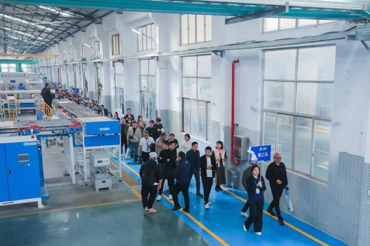 仪式结束后,与会嘉宾移步生产车间,实地参观了21-28号绿色智能生产线。通过近距离观摩窑炉运行、智能控制系统及数字化生产流程,嘉宾们切身感受到了旭日集团在绿色制造与智能化转型方面的实践成果。
