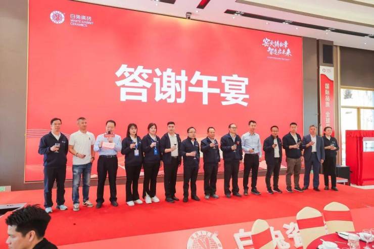 在答谢午宴上,旭日集团副总经理、珠海市白兔陶瓷有限公司总经理龚晖发表致辞,向长期以来给予支持的各方致以诚挚谢意。随后,旭日集团高层领导团队与现场来宾共同举杯,齐贺旭日集团28号窑绿色智能生产线顺利投产这一意义非凡的美好时刻。