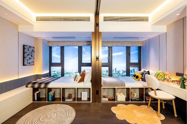 建面约126㎡四房户型的次卧开间均超过2.2米,全部能放下一张舒适的床,为父母同住、二孩家庭做足了准备。
