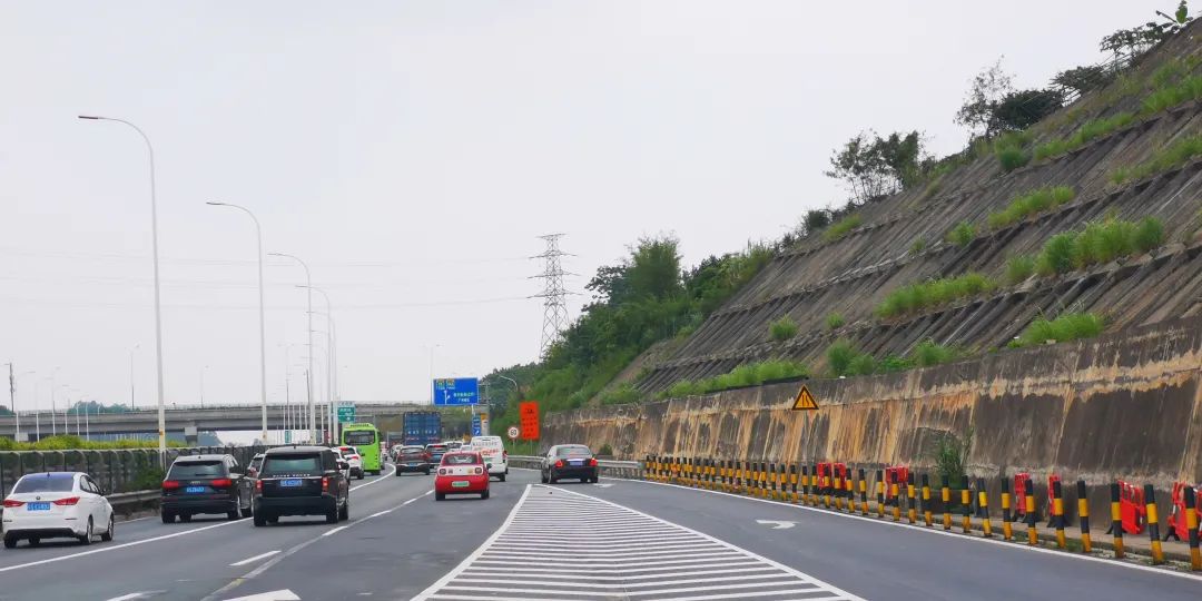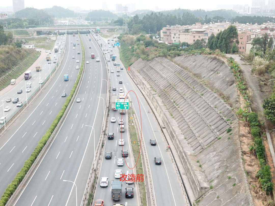 金山大道东往西冼庄立交至新光快速入口,番禺大道匝道西行连接金山大道交汇处扩宽了,施工单位铲除了匝道旁侧的边坡绿化带,改为车行道,使该处金山大道主道由原来的两条增加到现在的三条。据了解,金山大道东往西冼庄立交至新光快速入口处是一个交通瓶颈,每天早晚高峰期都出现交通拥堵,扩宽了交汇路面后,将有效提升该入口路段的通行力。