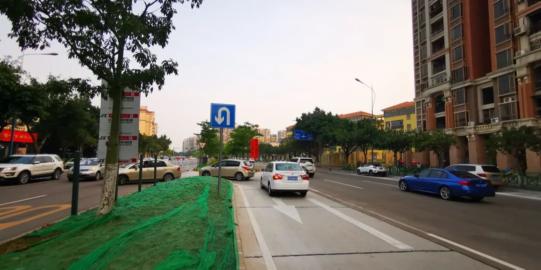 南城路与福愉西路交叉路段新开辟北往北掉头位,位于南城路番禺中学附属小学附近,离南城路与福愉西路交叉口约50米,通过削减南城路中央绿化带,增设一条掉头车道。据了解,该处没有开辟北往北掉头位之前,南城路北往北掉头的车辆需要从前面的南城路与福愉西路交叉路口掉头,与在交叉路口左转的车辆同道,影响交叉路口的通行效率,开辟北往北掉头位后,从该路段掉头的车辆和左转的车辆也就可以各行其道了。
