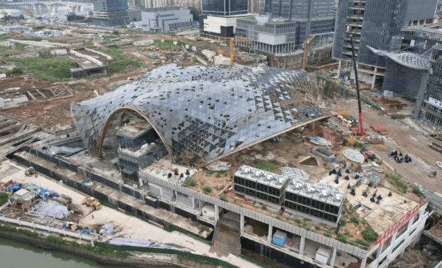 近日,记者从广州金融城站综合交通枢纽公司获悉,目前,广州金融城广场工程主体结构已封顶,钢结构网盖以及玻璃幕墙接近完成,机电安装及装饰装修进入收尾阶段。“锦鲤馔玉”的外观造型已初现,项目总体进度完成90%,预计今年底完工。