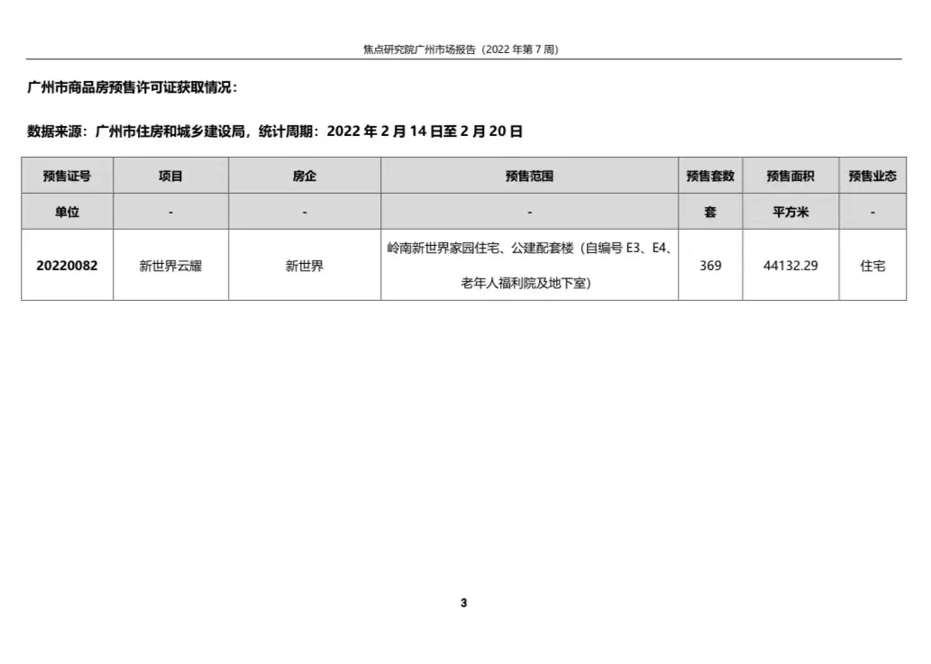 二级市场方面,当周广州一手住宅新增供应369套,环比上涨47.01%,面积4.4万平方米,环比上涨62.96%;均源自新世界云耀项目。