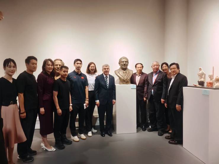 在参观过程中,巴赫主席由衷赞叹袁熙坤作品中对体育人物精神风貌的精准捕捉。他特别在自己肖像雕塑前驻足,并欣然合影,成就了一段“巴赫遇见巴赫”的佳话。