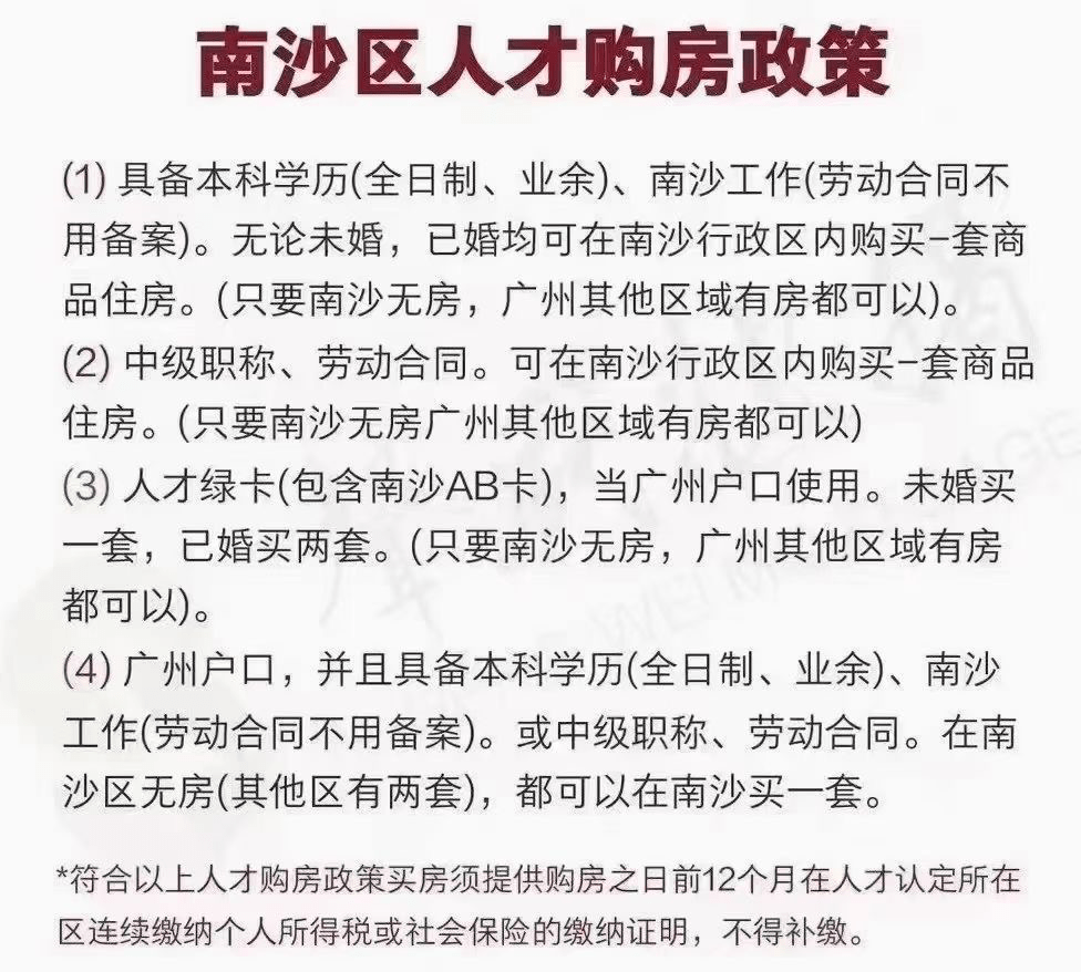 昨晚,广州南沙宣布:收紧人才购房政策!