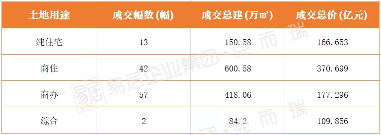 从成交的用地属性分析,其中涉宅地中(口径:纯住宅+商住+综合)占据大头,这也不乏是因为商办用地的出让金普遍比宅地低。