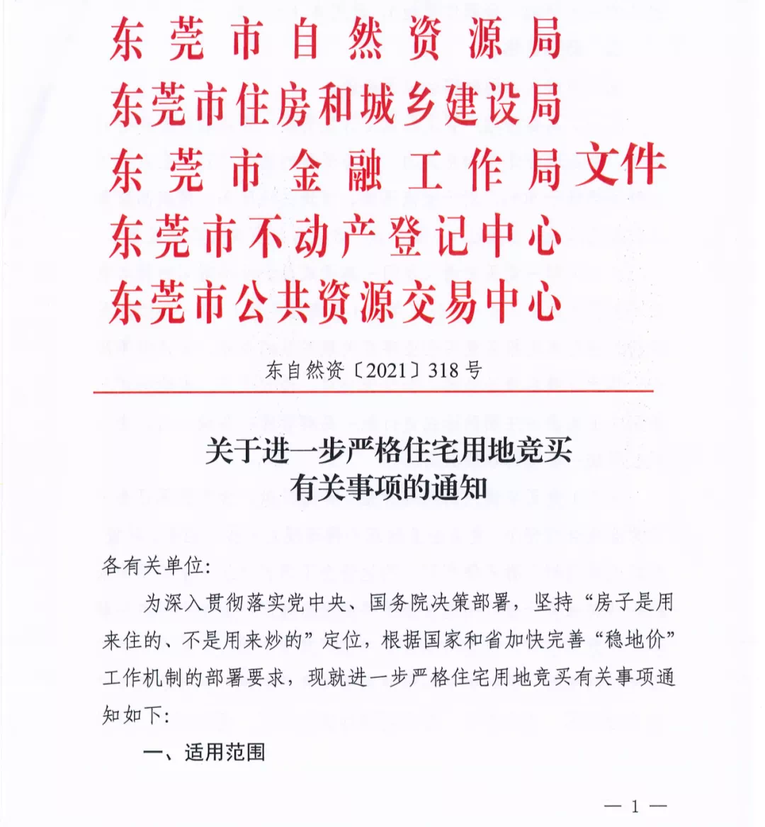 继广州、深圳土拍规则大变后,东莞土拍也迎来新政!昨日,东莞自然资源局官网发布《关于进一步严格住宅用地竞买有关事项的通知》。