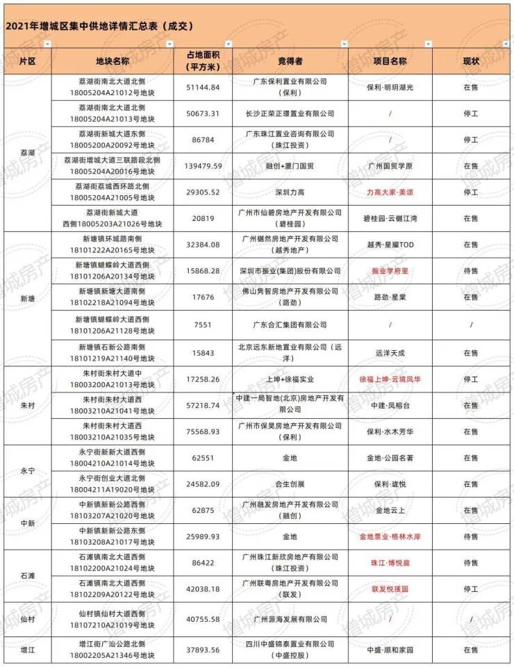 第四,2021年增城成功出让了22宗地,据不完全统计,13个项目已经开盘,最多9个项目能入市。