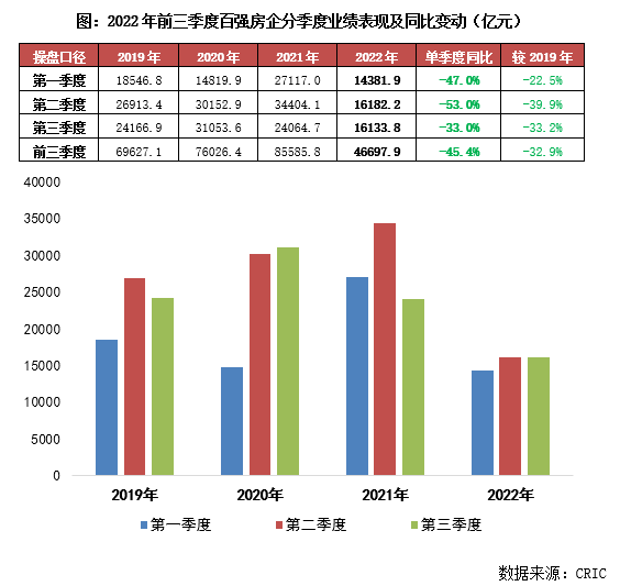克而瑞数据显示,百强房企1-9月销售操盘金额同比降幅仍保持在45.4%的较高水平。
