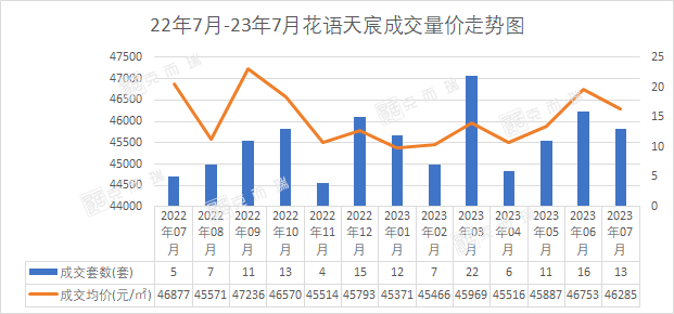 价格方面,因为是限价盘,所以网签价格最高不会超过4.68万元/㎡。克而瑞数据监测显示,近一年花语天宸网签均价区间在4.46万元-4.68万元/㎡,共成交142套。