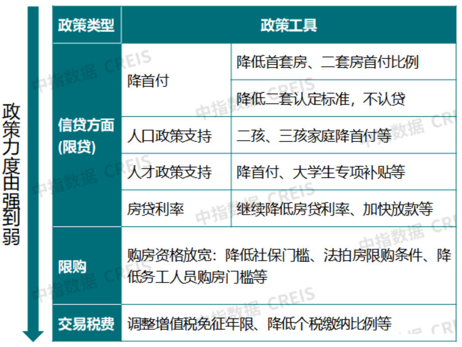 各地出台的楼市纾困政策类型 来源:中指研究院