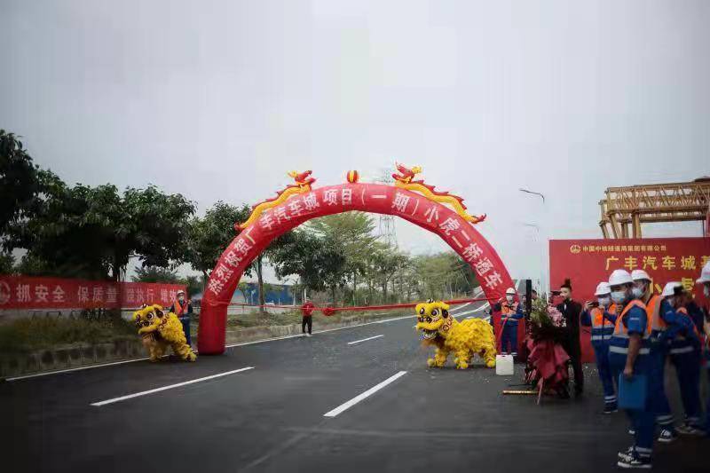 中铁隧道局广丰汽车城一期项目部在南沙区政府、交警大队、建设局、供电局及业主的大力支持下,克服诸多施工建设难点,于2021年10月20日完成全部预制梁生产,于2021年12月12日完成全部预制梁架设,于2022年1月20日完成桥面沥青摊铺,于2022年1月25日完成路面标识线,于2022年1月26日完成路灯安装,最终于2022年1月28日比原计划提前2个月实现主道全面通车。充分展现了中隧人善于攻坚克难的斗争精神和积极创新创效的争先意识。