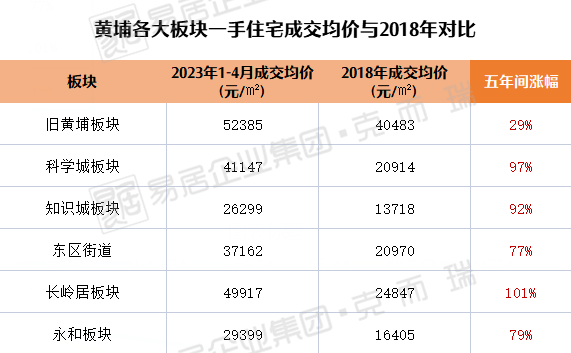 回顾过去五年,黄埔全区房价普涨,五年间涨幅达到128%。