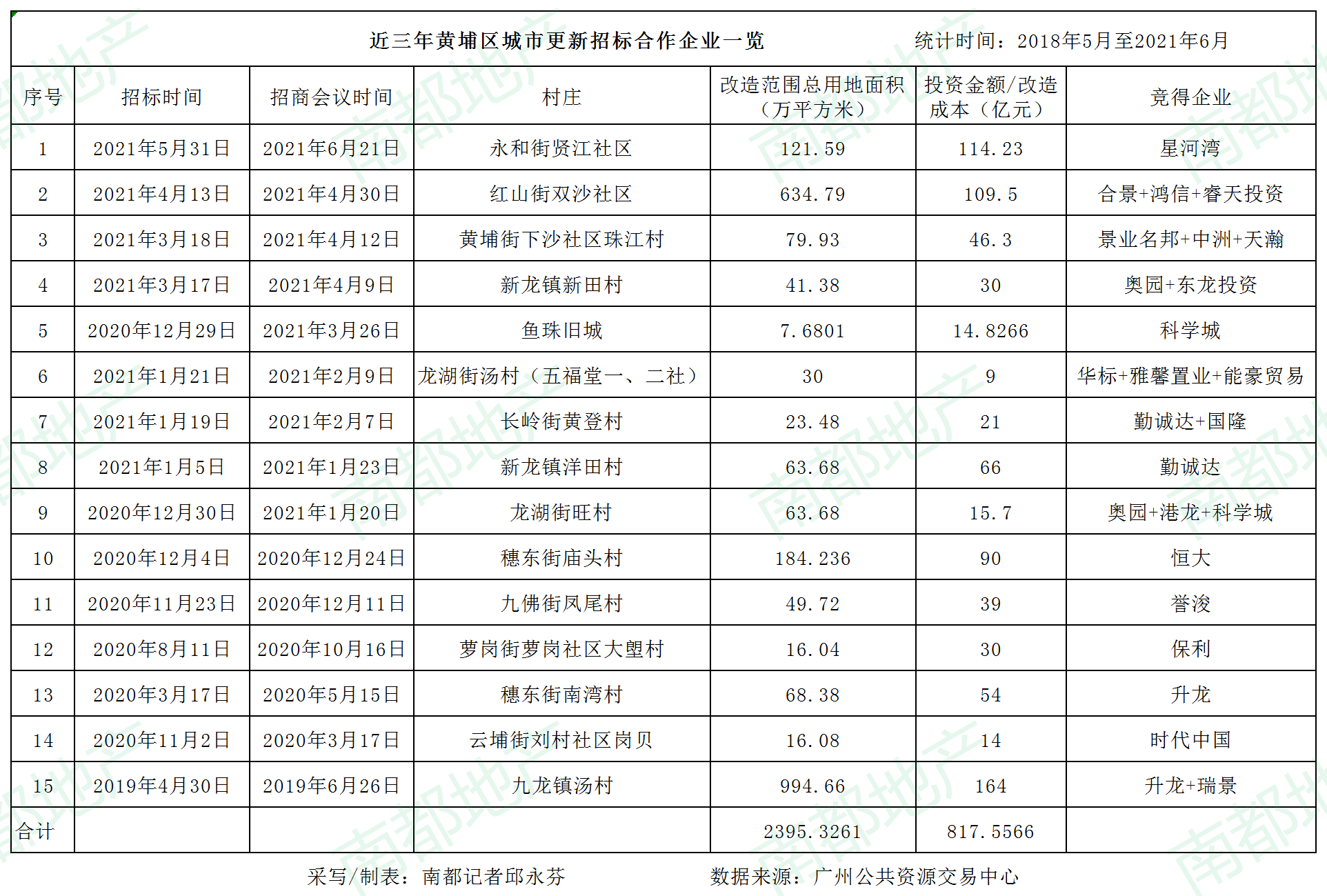 当前黄埔区至少已有71条村列入改造计划,已经确认改造主体或意向企业的已有46条村,近三年已公开招标的有15条村。涉及改造范围2395.3万平方米,投资总额817.6亿元。