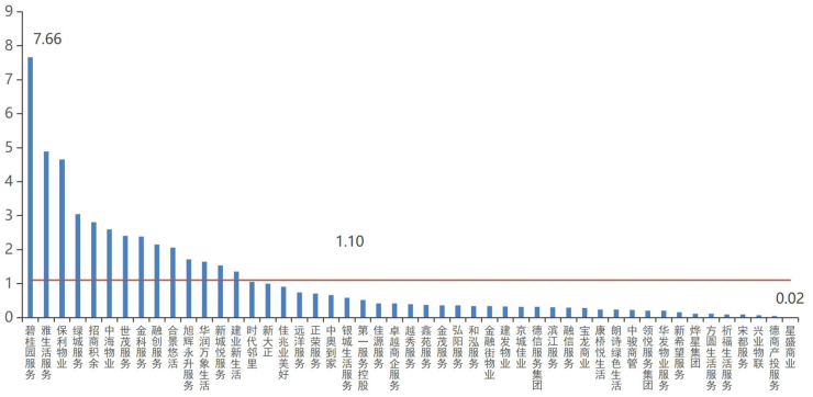 2021年已上市物企在管面积(亿平方米)。图片来源/克而瑞物管