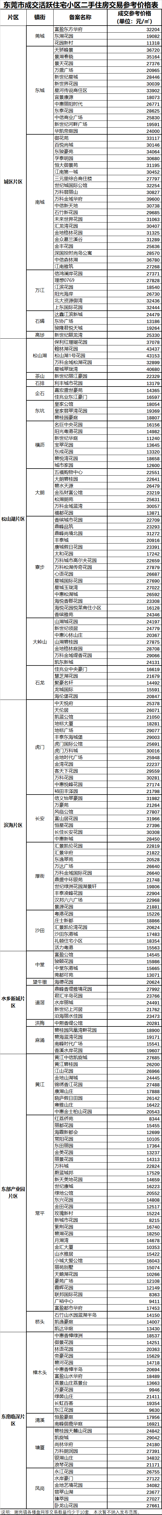 10月8日,东莞市住建局发布《关于建立二手住房交易参考价格发布机制的通知(东建房〔2021〕10号)》,此次发布了218个楼盘二手住房交易参考价。