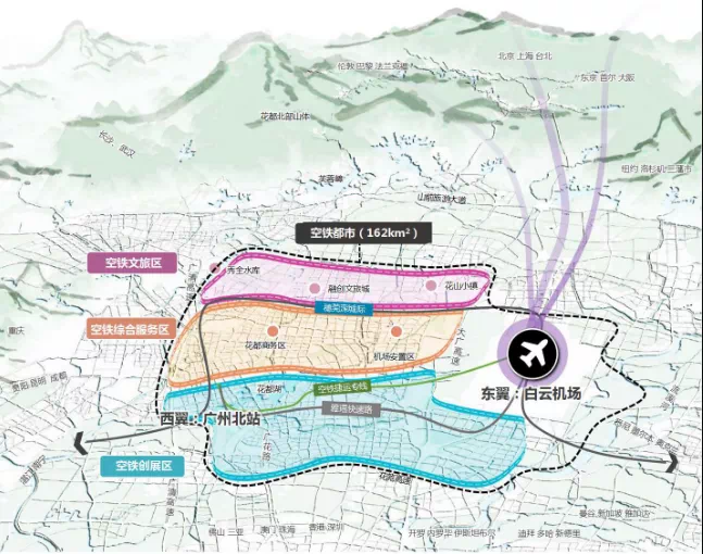 花都区正举全区之力提升交通枢纽能级,建设空铁融合发展示范区。在“双区建设”及“双循环”发展大背景下,空铁融合发展示范区立足广州白云国际机场扩容、广州北站一期改扩建、大田货运站等形成的空铁一体化枢纽及其空铁联运体系建设带来的超级投资+先进流量,对周边约500平方公里片区进行整体战略格局,提出了建构国际国内双循环战略链接支点,建设空铁经济自由区战略定位,通过“北站+机场”湾区内少有的大型空铁联运枢纽,强化与泛珠、西江经济带、东盟的联系,辐射带动临空经济地区,成为新时期广州的增长极点。