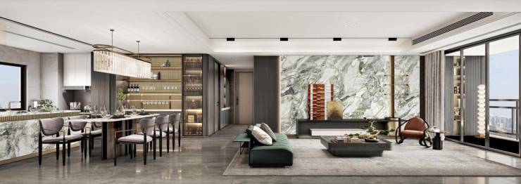 大三房采用“超聚厅”设计,无论是家庭聚会,还是商务会客,气派感都十分充足。