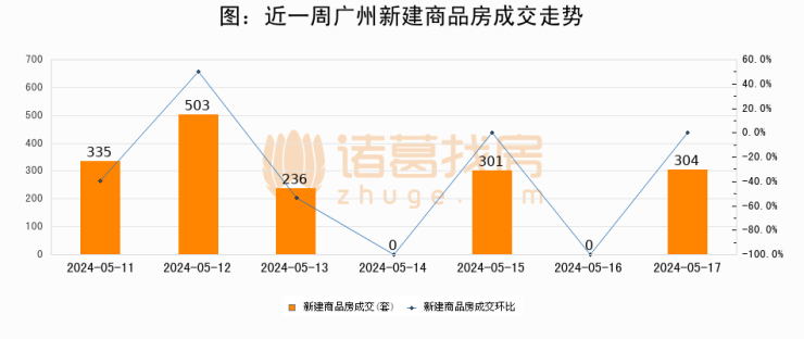 【广州成交日报】05月17日新房成交304套;涨价房源123套
