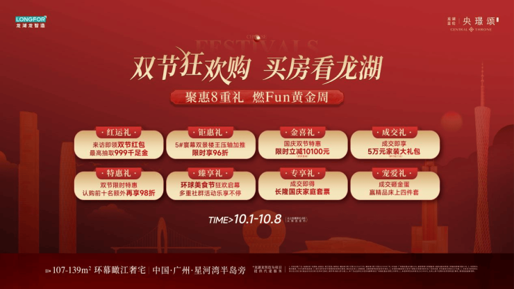 从伦敦国际设计金奖的美学认可,到5个月跻身全年热销榜单的市场验证,龙湖亚伦·央璟颂的每一步都在书写传奇。如今,5#寰幕双景王座耀世加推,带着江园双景的稀缺资源与迭代升级的产品力,再启广州奢居新篇章。建面约107-139㎡寰幕双景王座,传奇之上,再启新章,国庆双节8重钜惠豪礼,最后机惠错过不再有!有兴趣的客户可以导航至龙湖亚伦·央璟颂营销中心,或拨打020-26229999咨询。