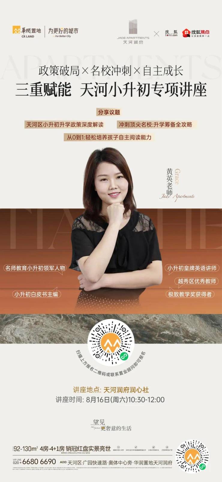 另外,8月16日,天河润府特邀名师举办小升初专项讲座,干货满满。名额有限,感兴趣的你,速速扫码抢位!