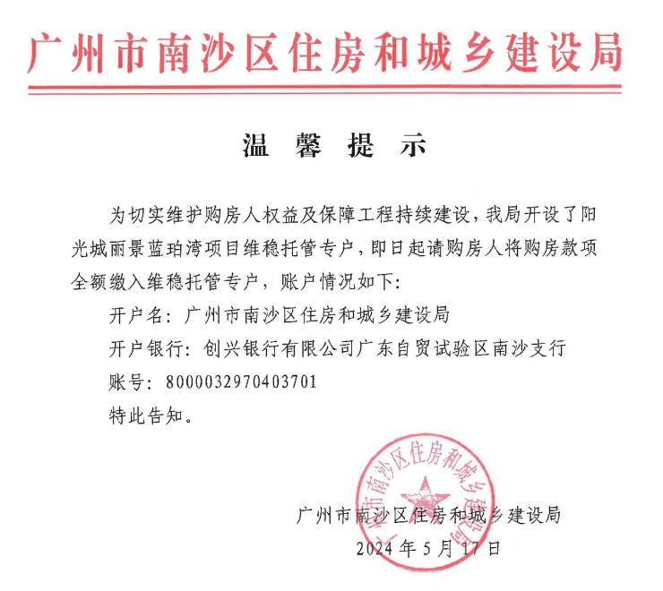 项目此前一度停摆,响应“保民生、保交楼、保稳定”的号召,从今年5月份开始全面复工,并且进入政府保交楼重点项目名单中,政府为项目特设维稳托管专户,专款专用于施工建设。