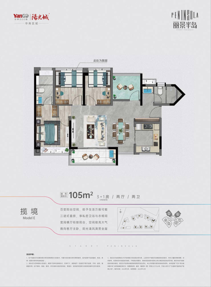 丽景半岛即将加推6#栋的85-105方蕉门中轴全景三/四房。