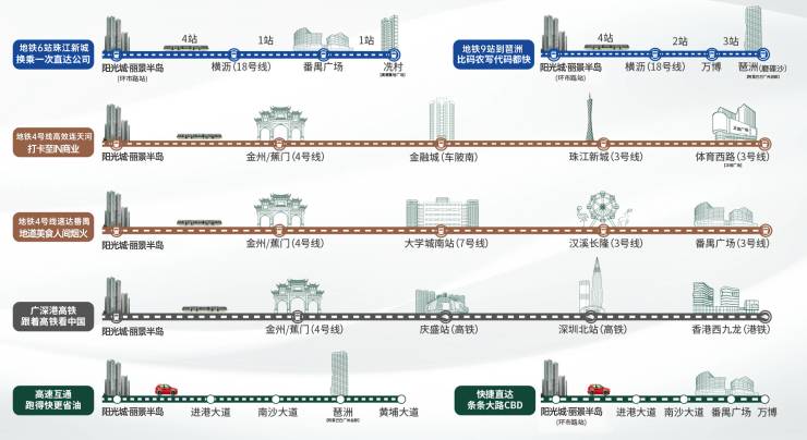 项目直线距离1公里以内的地铁4号线蕉门站及金洲站,可直达天河黄村,而且项目为15号线(规划中)地铁上盖,未来接驳18号线快速直达珠江新城,畅行湾区。这不仅仅是便捷的交通力,更是区域的价值力!为整个板块物业价值提供了稳定的保障。
