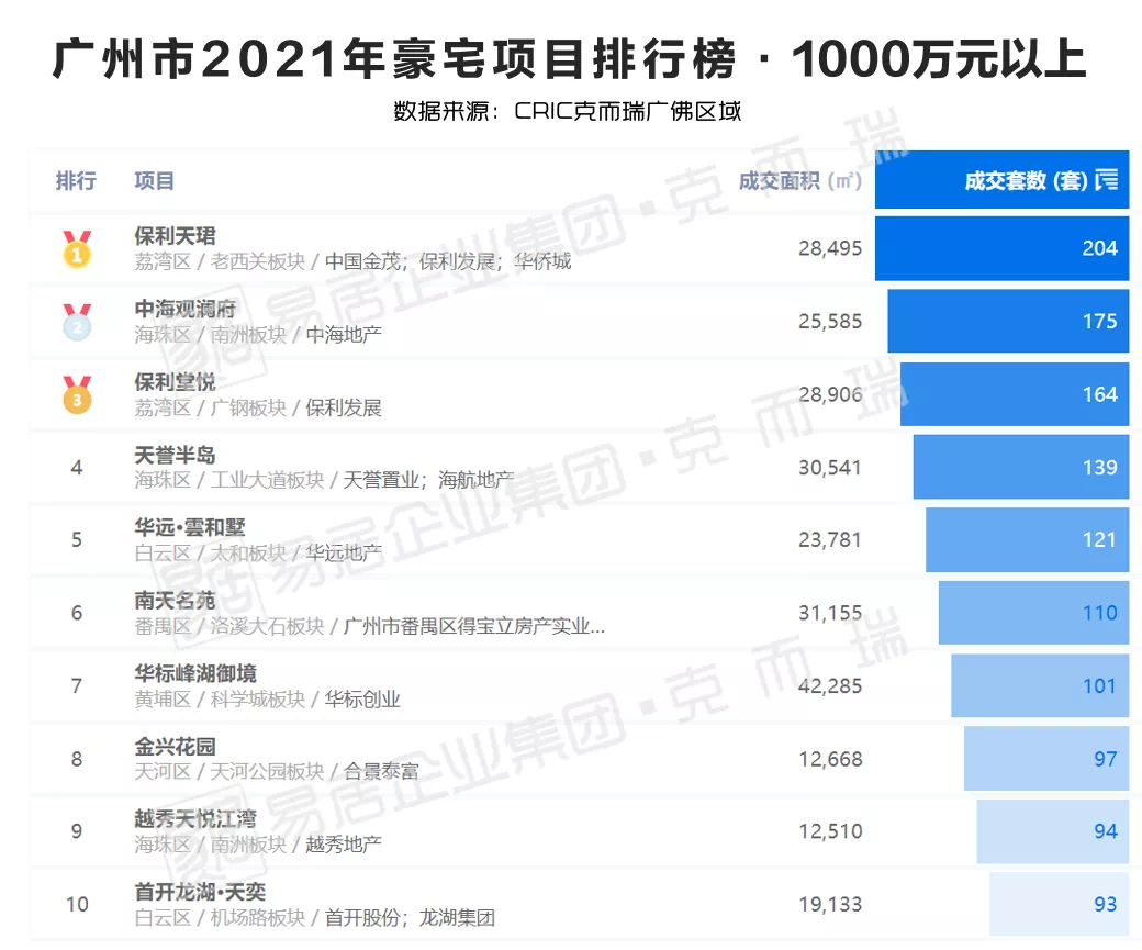 保利天珺以成交204套排名广州排名前列;