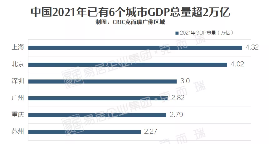 并且同一天午间,深圳市委书记王伟中、市长覃伟中发布了“致广大网民朋友的拜年信”,信中提及深圳2021年经济总量站上3万亿元新台阶。在加上目前披露GDP的地级市中,突破2万亿GDP总值的城市与2020年一样,目前有6个城市,分别是上海、北京、深圳、广州、重庆、苏州(按序)。2021年,广州GDP以优势先进了重庆,稳坐中国“第四名”。
