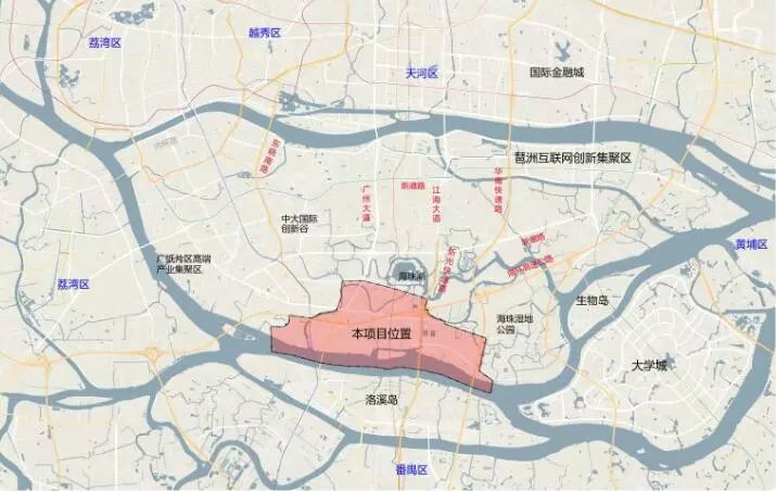 从规划可看出,该区域是广州新中轴线最南端、有超过5公里的珠江岸线,西边是广纸高端产业集聚区,东面是海珠湿地公园、生物岛、大学城,北面是中大国际创新谷、海珠湖。