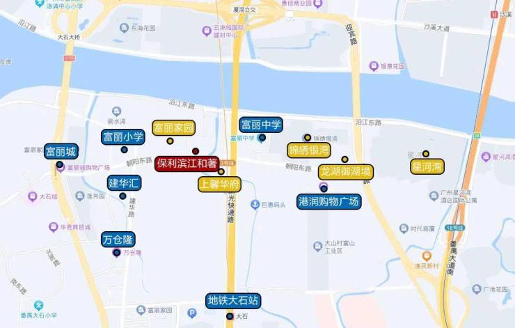 再细看,其地处新光快速西侧,驾车出发到珠江新城、琶洲、万博等热门区域,都还算便利。