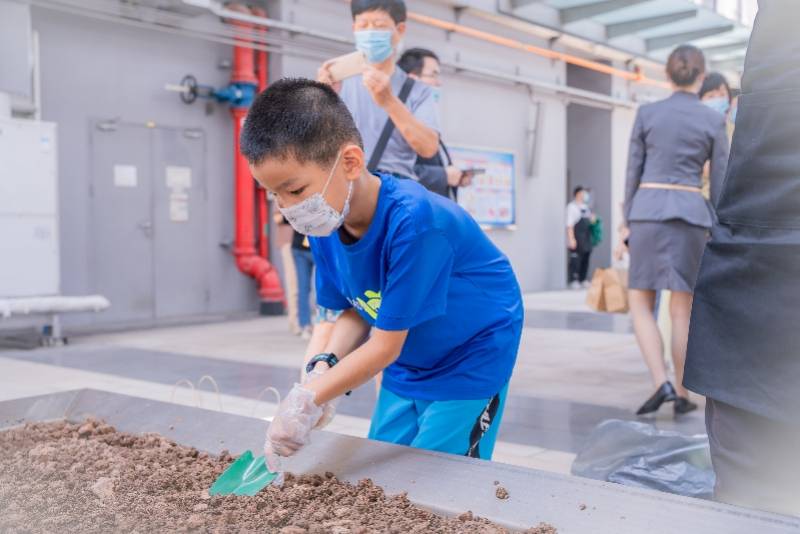 正逢暑假,有业户带着孩子一同前来,记者在现场观察发现,为了让小朋友也能参与到互动中来,在农场里还特地开辟了两个小型的空“菜地”,作为小朋友的实验地。孩子们拿着现场提供的小绿铲有模有样地翻土,一会拎着大水壶浇水。一把铲子、一包种子、一块土壤,让当代“打工人”难得利用午间休息时段,放慢节奏享受美好的亲子时光。有参与者表示,“这类活动非常有意义,可以帮助小孩了解生活常识,学习蔬菜种植知识。”