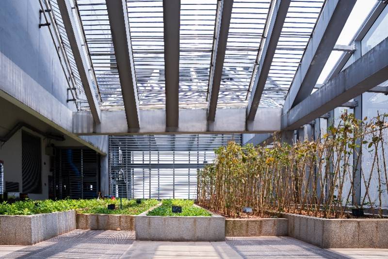 步入越秀金融大厦70楼,映入眼帘的是满眼翠绿,番薯叶、莜麦菜、菜心、小白菜,以及攀藤的豆角等有机蔬菜长势喜人。