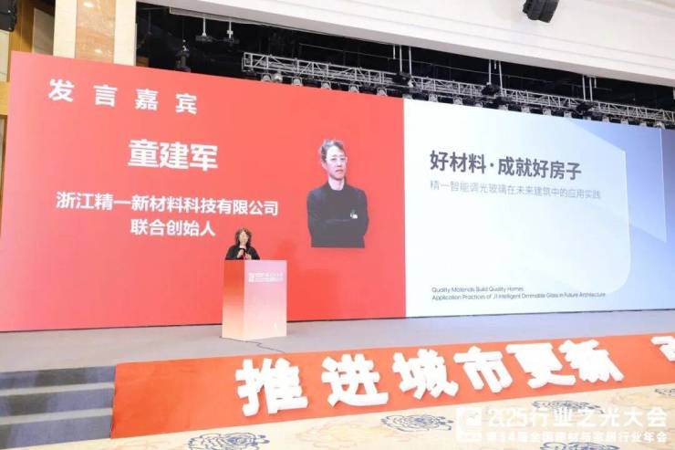 浙江精一新材料科技有限公司联合创始人童建军以“好材料·成就好房子”为题进行主题发言。