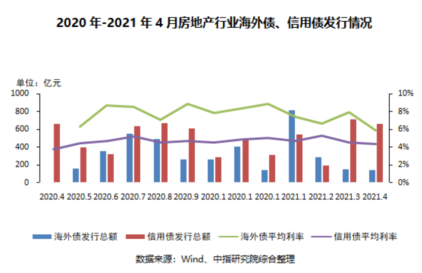 具体来看,4月房地产信用债发行规模为660.45亿元,相较于3月的714.41亿元降低7.55%;4月内地房企海外债发行规模为144.7亿元,相较于3月153.5亿元降低5.73%。