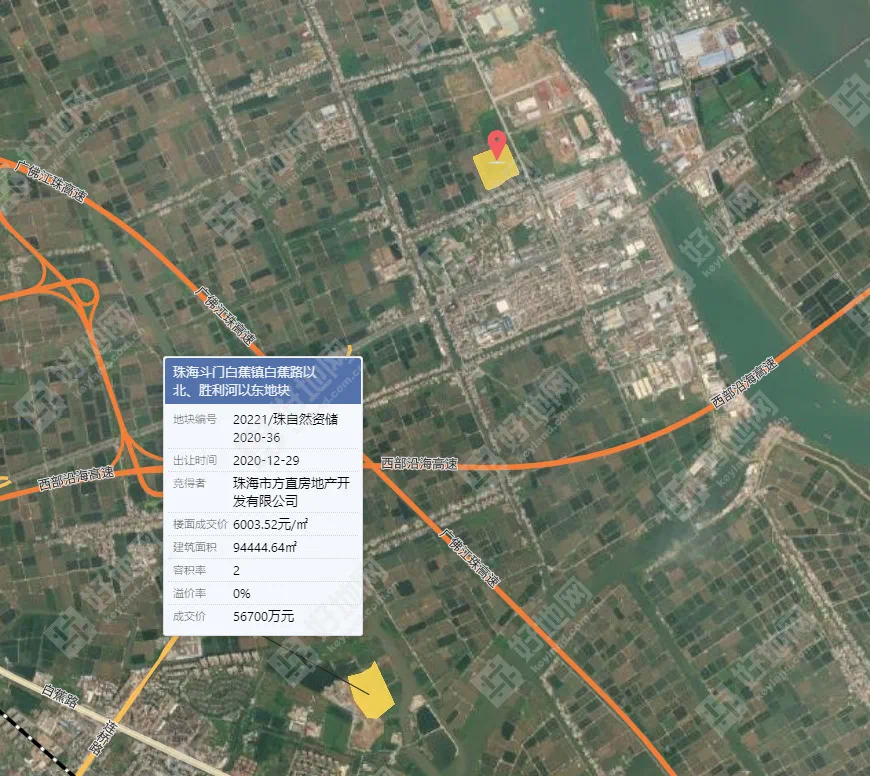 地块位于斗门区白蕉镇新港大道西侧、新围路南侧,出让面积54172.15㎡,容积率为3,较大计容建面162516.45㎡。地块起价68200万元,楼面起价4197元/㎡,采用“竞地价+竞人才住房面积”的方式确定竞得人,上限价102300万元,上限楼面价6295元/㎡,竞买保证金为20460万元,网上限时竞价时间为3月2日10时。
