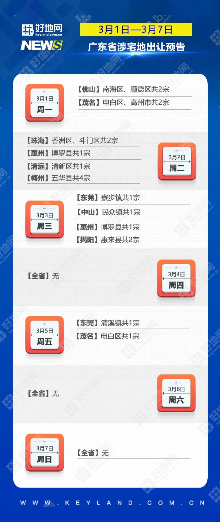编者按:好地研究院梳理广东省各市土地市场的公告信息,帮助开发商动态汇总即将出让的地块。