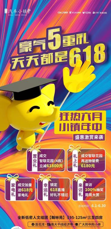 “618”期间,该项目推出“成交智联花园(4栋)立减61800元、成交智联花园再送物管费6180元”等“成交五重礼”活动。更多详情,大家可点击下方图片致电售楼中心了解哦。