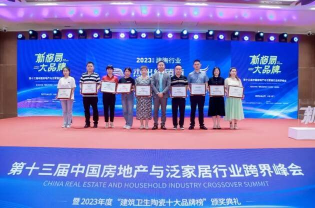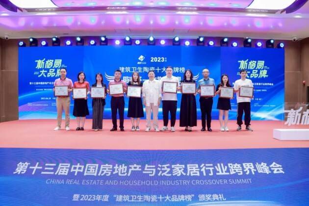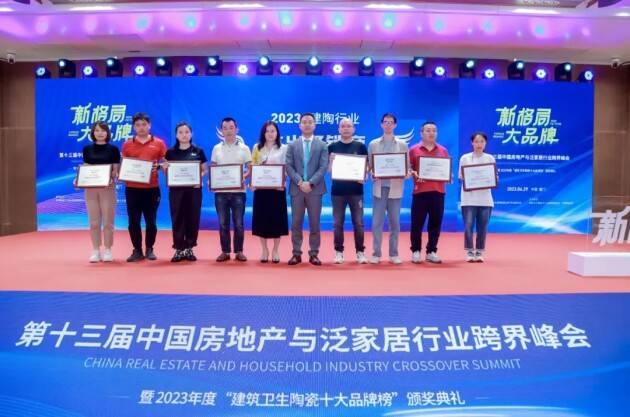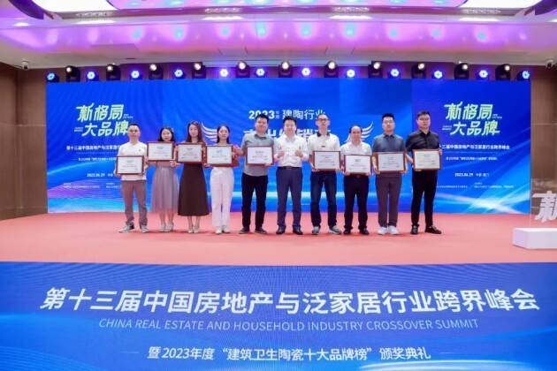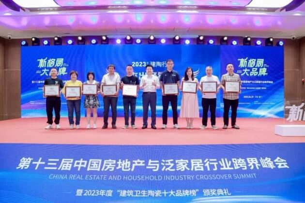 6月29日下午,由中国陶瓷工业协会瓷砖粘贴技术专业委员会指导、中国陶瓷网主办和承办,以“新格局,大品牌”为主题的第十三届房地产与泛家居行业跨界峰会暨2023年度“建筑卫生陶瓷十大品牌榜”颁奖盛典在厦门国际会议中心举行。