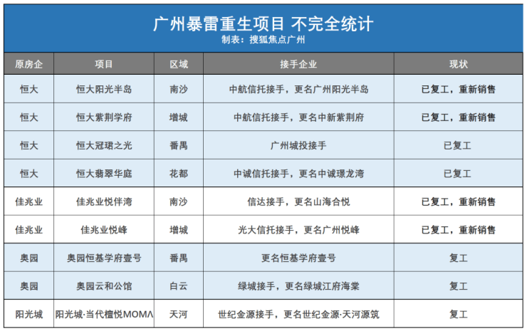 而广州地产业,影响最大的就是恒大、奥园、佳兆业、融创、阳光城等房企的项目,相继停工。